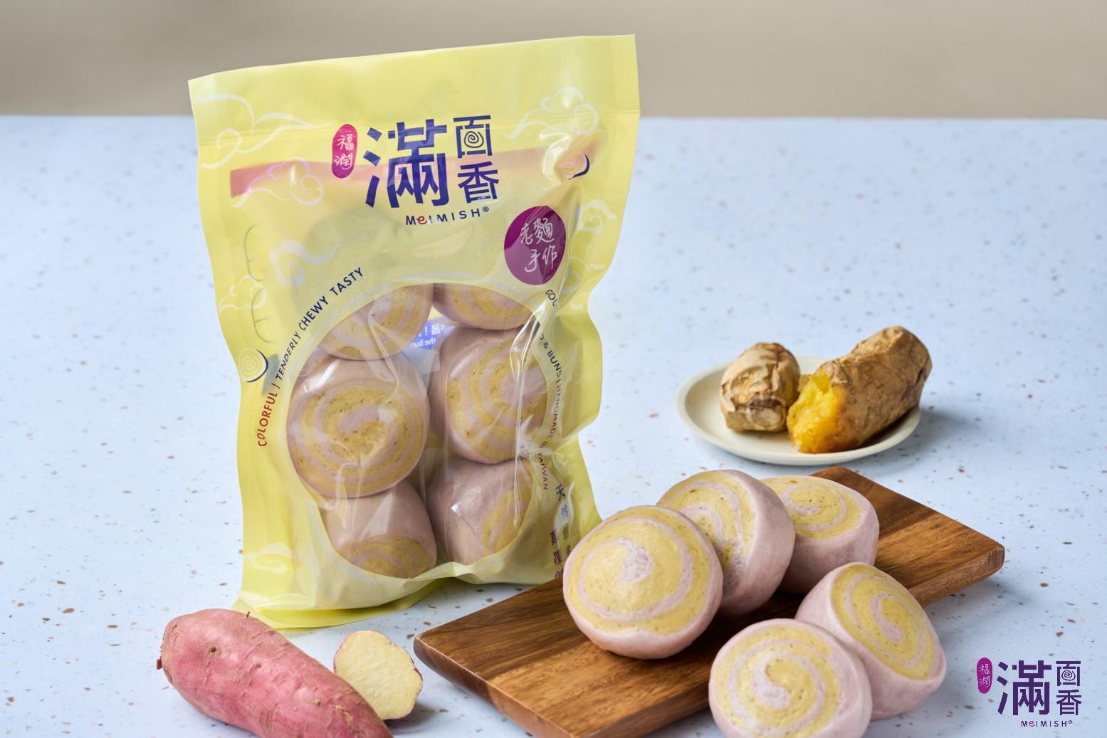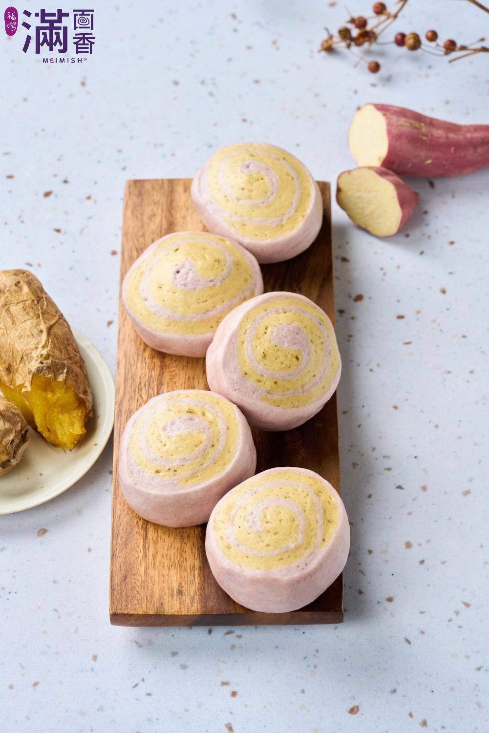 地瓜加入麵團中,蒸好後饅頭色澤天然,