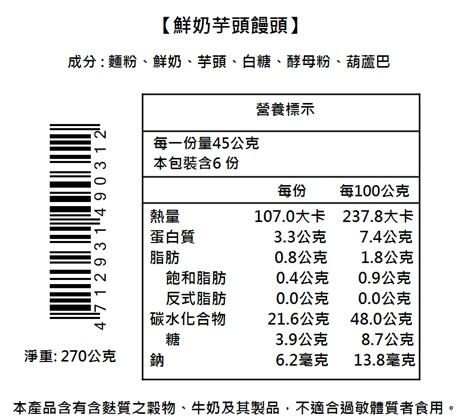 成 分:麵粉、鮮奶、芋頭、白糖、酵母粉、葫蘆巴