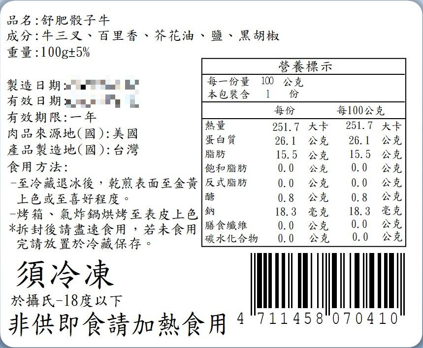 商品說明 商品名稱:舒肥骰子牛規 格:100g成 份:如包裝所示產 地:台灣(牛肉來源:美國)保存期限:冷凍12個月(以消費者收受日算起,至少距有效日期前180日以上)產品特色:🔹天然食材、低鈉調味、更無化學添加物,天天吃也無負擔!🔹廚房新手懶人首選,油花均勻、Q彈有嚼勁,細嫩好入口!🔹居家料理香煎或碳烤,簡單享受頂級牛肉!🔹舒肥法低溫烹煮,肉質款嫩不柴!