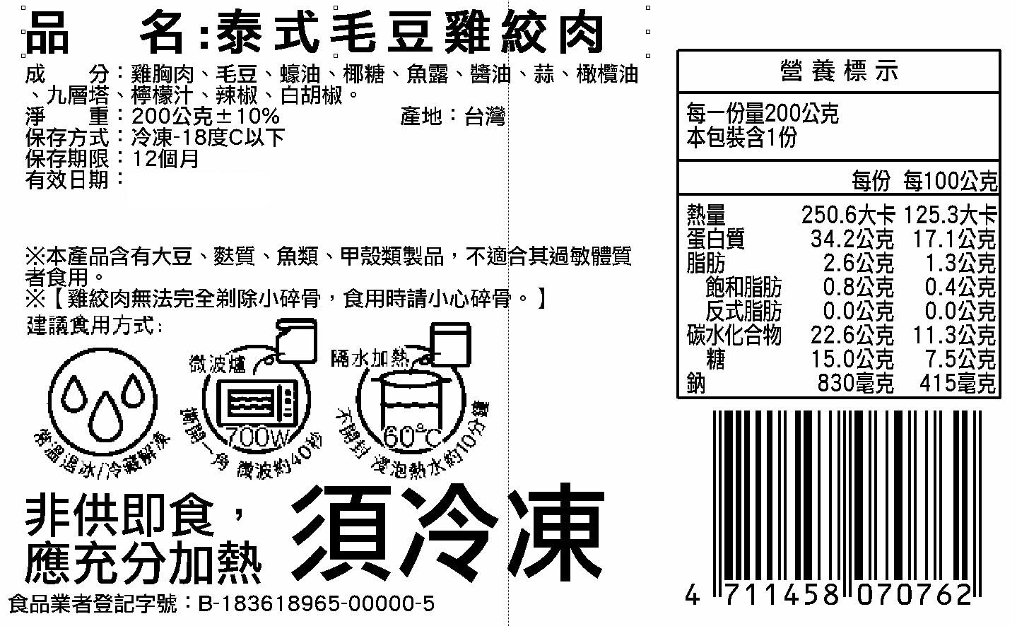 保存期限:冷凍12個月(以消費者收受日算起,至少距有效日期前180日以上)