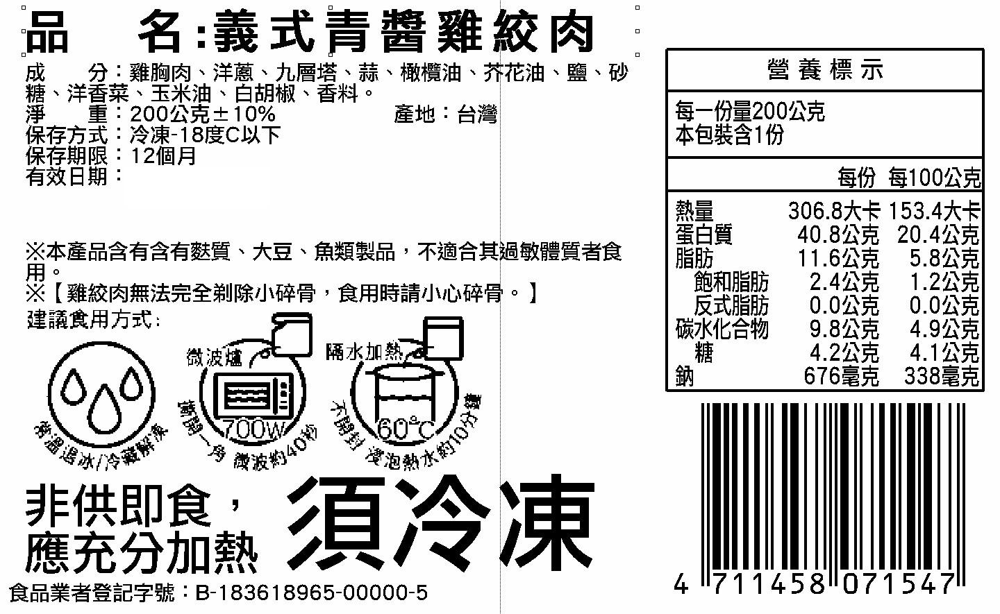 商品名稱:雞絞肉-義式青醬