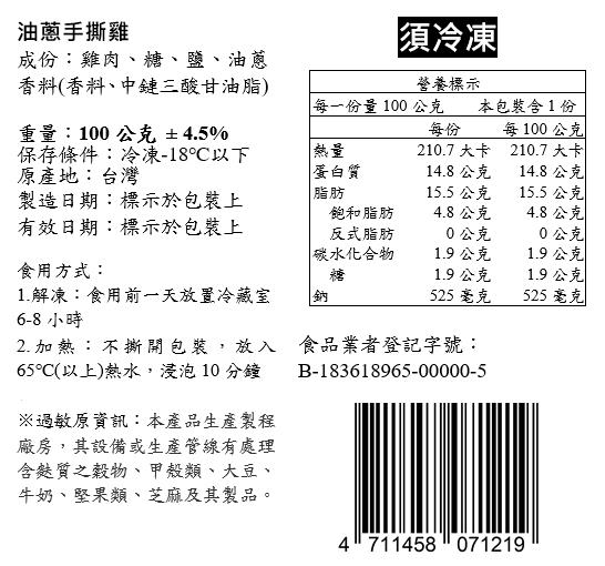 商品名稱:油蔥手撕雞
