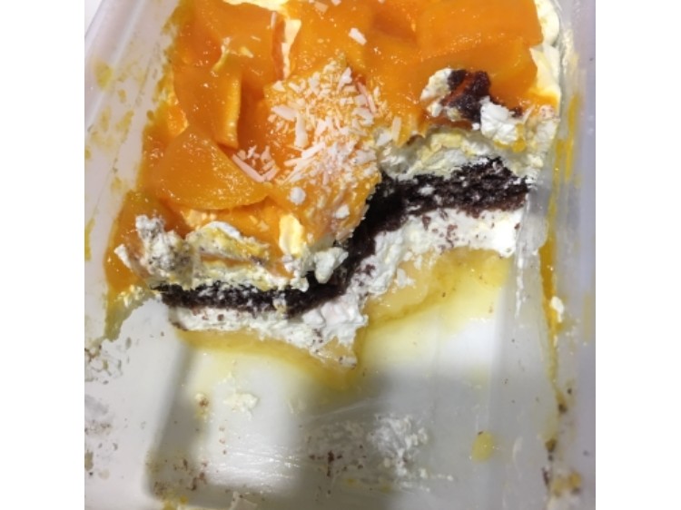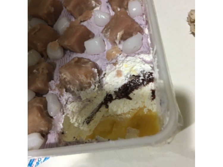 2019/06/07 14:24之前就買過美食村的爆漿餐包覺得很失望很化學,這次再給蛋糕一次機會,還是很失望,水果很少鮮奶油和布丁很多,蜜芋頭口感失敗而且感覺是用糖精泡的,以後不買這家的東西了!附上實品切面圖,或許喜歡鮮奶油的人會喜歡吧