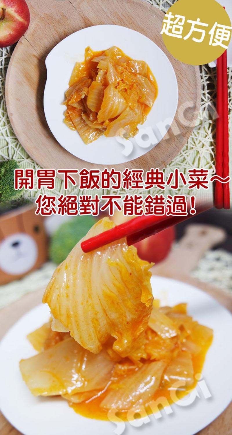 商品說明 商品名稱:【老爸ㄟ廚房】黃金泡菜規 格:150g±4.5%/包成 分:大白菜.米醋.蒜頭.砂糖.香油(白芝麻.大豆油).辣油.鹽.紅辣椒泥.辣椒紅.調味劑(L-麩酸鈉.5`-次黃嘌呤核苷磷酸二鈉.5`-鳥嘌呤核苷磷酸二納.琥珀酸二鈉.胺基乙酸).黏稠劑(玉米糖膠).乳化劑(脂肪酸甘油酯)產 地:台灣保存期限:冷凍1年(以消費者收受日算起,至少距有效日期前180日以上) 產品特色:各式涼拌小菜一次滿足小酌、聚餐、野餐必備方便好攜帶,口感美味 注意事項:過敏原資訊:本產品含有芝麻.大豆及其製品不適合其過敏體質者食用