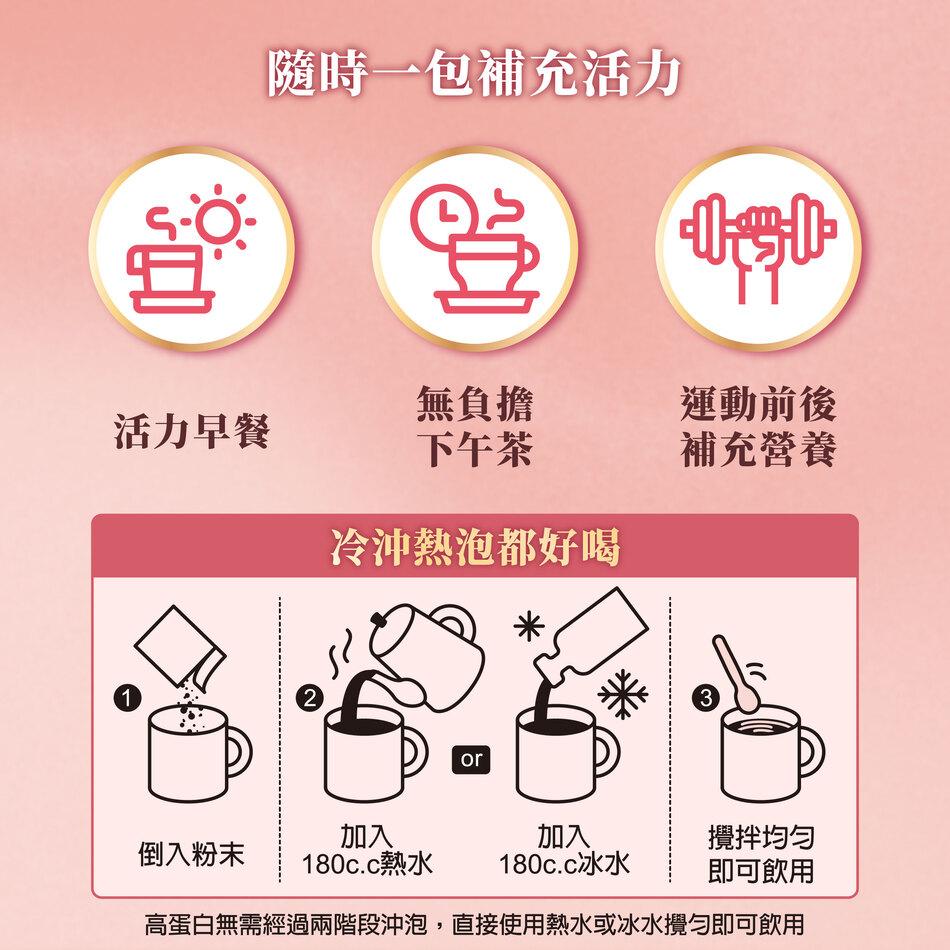產品特色:每包含2顆蛋蛋白質(12g),0膽固醇、高鈣含纖,且無添加香料、色素、防腐劑,好喝又飽足。