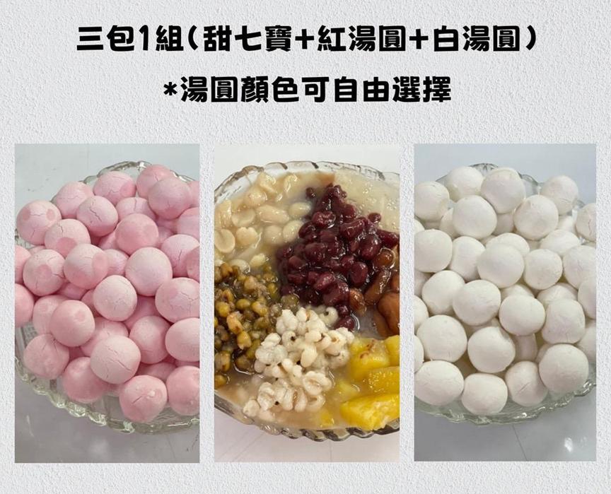 規 格:甜七寶400g(真空包) + 紅色湯圓 300g + 白湯圓 300g