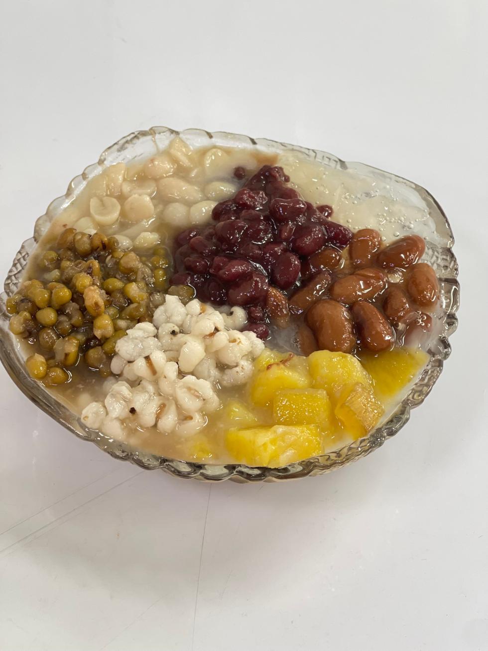 成 份:紅豆、白木耳、黃肉甘藷、薏仁、綠豆、去膜花生仁、花豆、砂糖、水