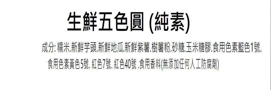 產品名稱:生鮮五色圓(紅白湯圓+芋圓+地瓜圓+紫薯圓)