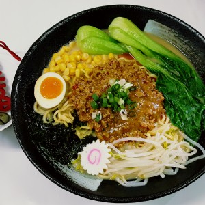 拉麵,豚骨濃縮高湯,叉燒,魚板,海帶芽,筍乾,玉米….等。