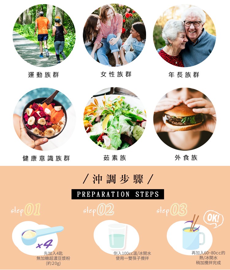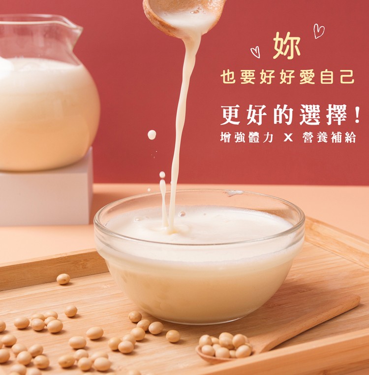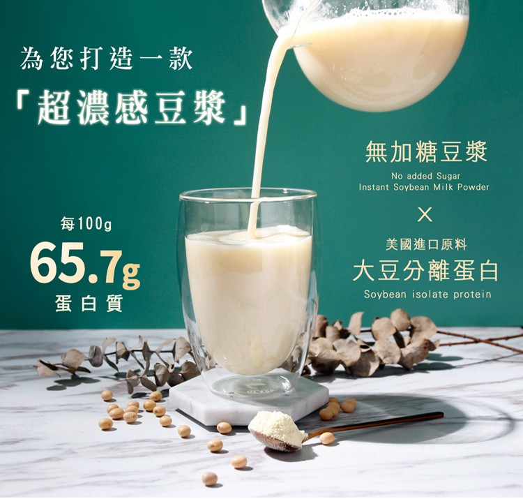 以先進濃縮噴霧乾燥技術製成不具苦澀味的即飲豆漿粉,方便沖泡溶解,濃郁順口,營養美味。