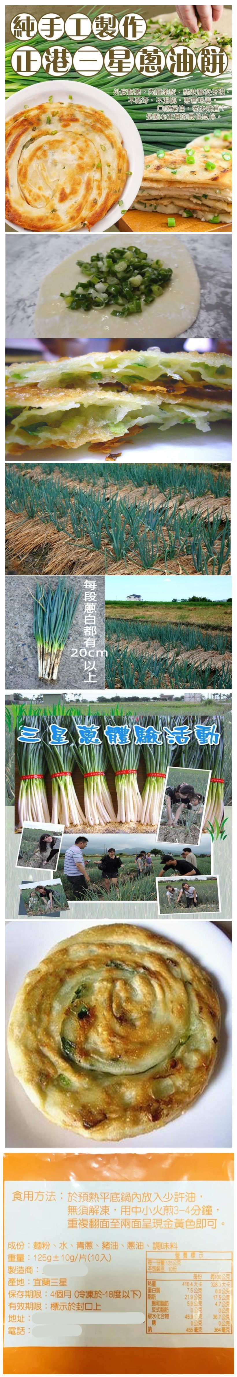 商品說明 蔥仔寮純手工五星級三星蔥油餅比市面上的蔥餅更香更酥更好吃完全不用油即可煎食#專業蔥餅達人精心調製採用正港三星蔥新鮮製作搭配鬆軟棉密的特製麵皮真功夫桿出的麵皮才能如此恰當撐出青蔥的香甜,沒有刺鼻味‼️手工三星蔥仔餅餅皮香酥🤤內皮鬆軟🤤不會死鹹🤤煎過後呈現金黃色澤和酥脆口感,咬下的每一口都有綿密的蔥香及餅香。一定符合青蔥控💕您的味蕾享受🤤來來來‼️常常去宜蘭玩‼️很想買,卻又擔心保存冷凍問題DIY完,還要跑景點這次,不用擔心了👍👍👍安心的宜蘭玩團購這裡幫你揪起來、訂起來回家坐等宅配上門吧💯★作法:不用退冰於預熱的平底鍋(不用油也可少油)用小火煎至二面呈金黃色酥皮即可食用產地:台灣保存期限:4個月有效日期:標示於包裝上保存條件:冷凍於-18度C以下重量:1250g+-10%/包(十片)成份:如圖所示 注意事項:.