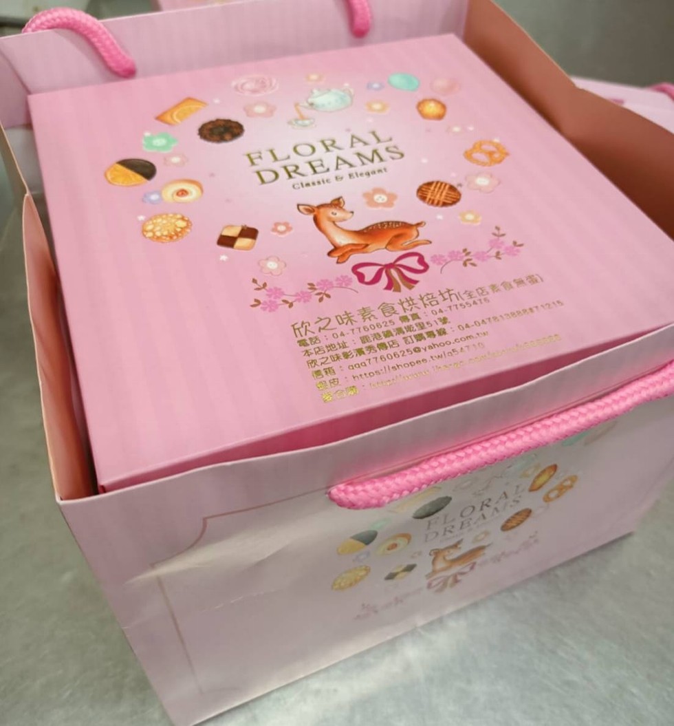 商品說明 商品說明:成分:麵粉.糖.油.糖.植物奶.杏仁片.杏仁角.芒果醬.可可粉全素(微甜)4種口味綜合.幸福滿滿的西式禮盒讓您驚喜.甜蜜.百年好合包裝說明:保存期限:常溫:10天.冷藏30天內容:芒果貝殼餅乾5包(單入重量:20)草莓曲琪5包(單入重量: 18公克)可可手工餅5包(單入重量:15公克)杏角手工餅5包(單入重量:26公克)外盒規格:19.5*19.5*11.5公分附提袋