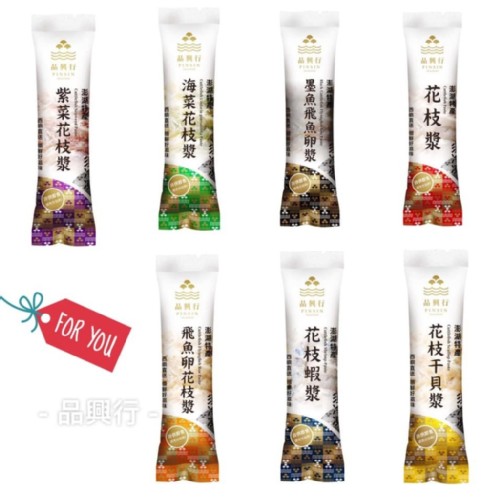成分:新鮮花枝(虎斑烏賊)、里肌油、飛魚卵、墨魚汁、樹薯澱粉、胡椒粉、糖、鹽、味精