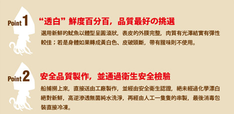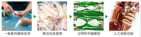 Check ►► ► ► ►☑ 每隻捕撈上來的魷魚,都經過細心處理、層層篩選,以人工方式將一隻隻魷魚串起,確保品質與新鮮!