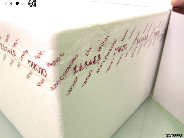 ▲保麗龍箱子上有慕求的LOGO。膠帶也是慕求冬虫夏草的