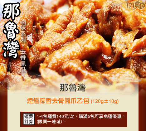 商品說明 商品名稱:【那魯灣】煙燻庶香去骨鳳爪