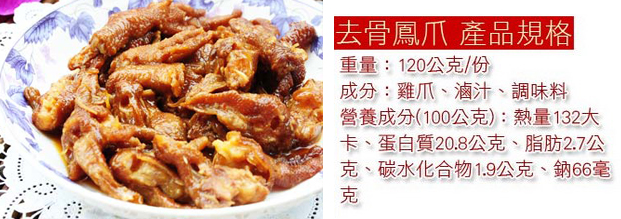 ●商品規格:【那魯灣】煙燻庶香去骨鳳爪(120g±10g)乙包!
