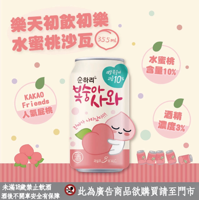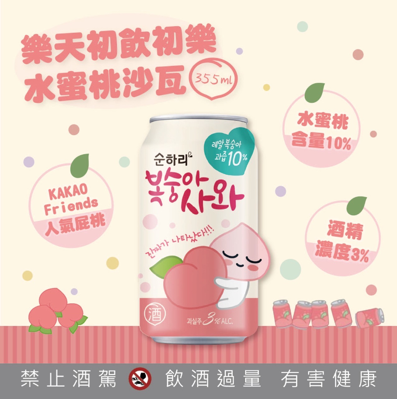 👉韓國初飲初樂水蜜桃沙瓦355ml(+1=6瓶/組)