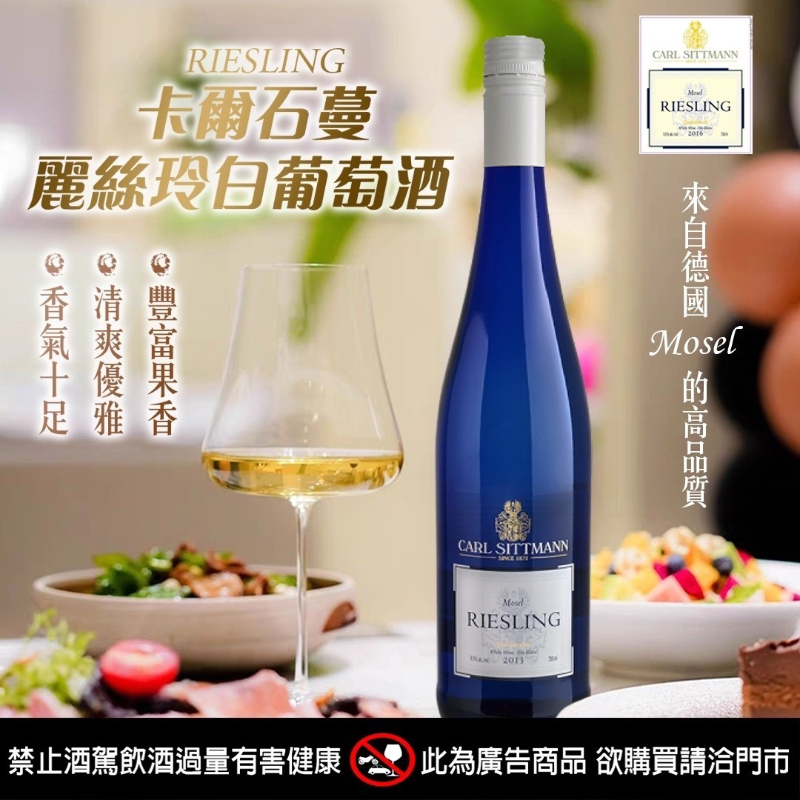 9/13(五)取貨~德國卡爾石蔓 麗絲玲白葡萄酒半甜750ml   | [分享商店] 興興百貨行