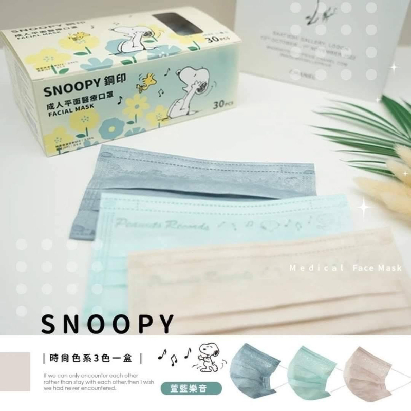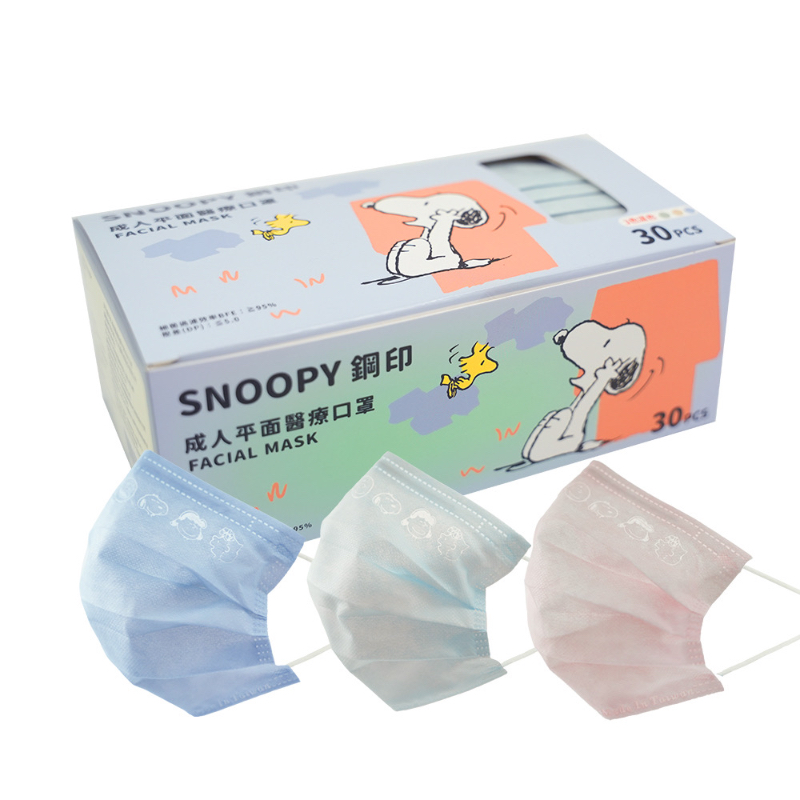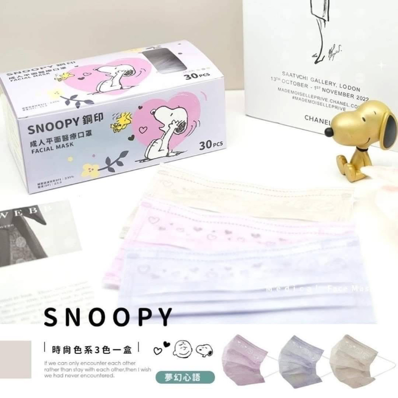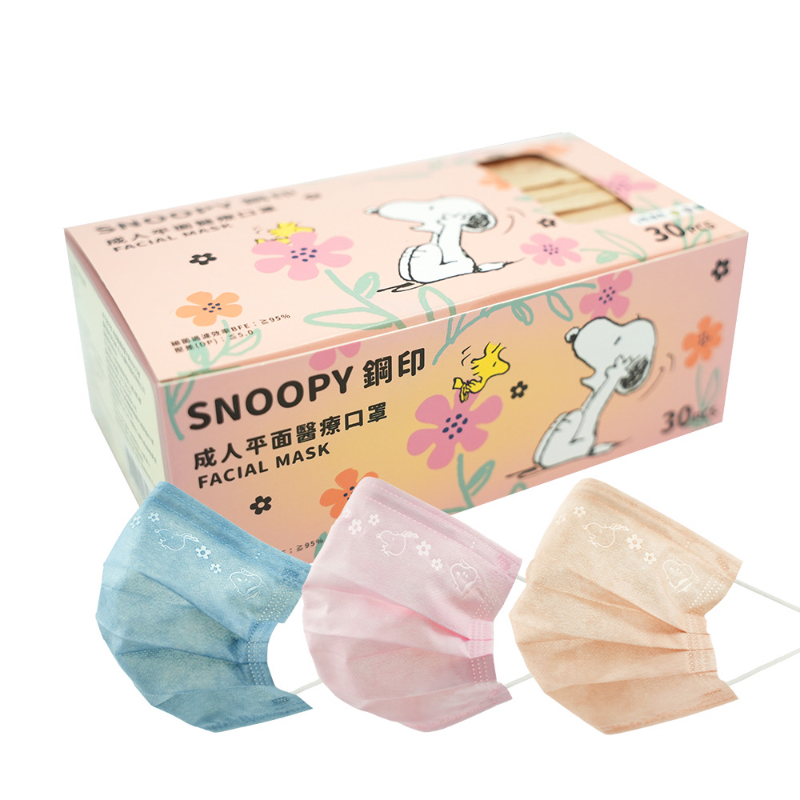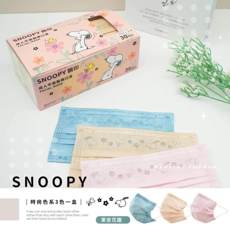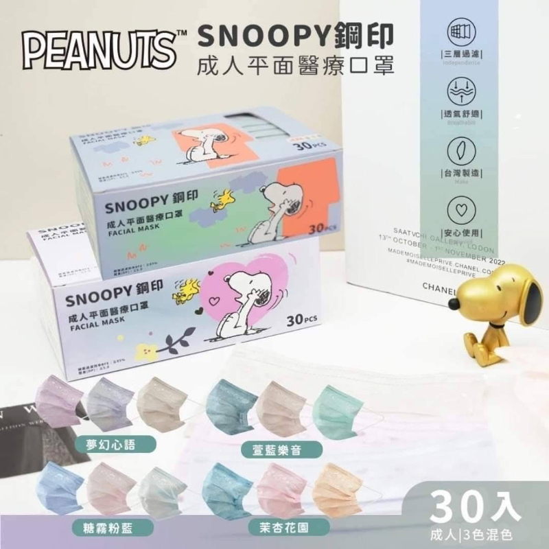 3 / 19 (三) 取貨 補趙O芝 蘇O玉正版授權 SNOOPY鋼印成人平面口罩30入/盒   | [分享商店] 興興百貨行