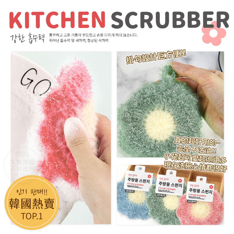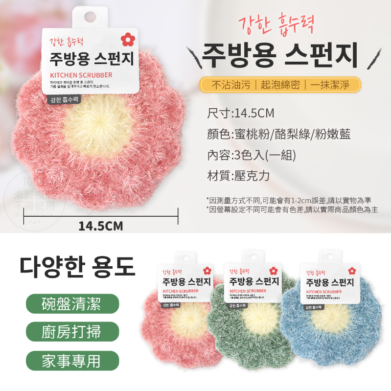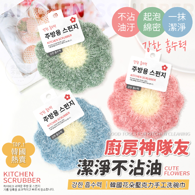 👉강한흡수력 韓國花朵壓克力手工洗碗巾 (+1=3入/組) 👉3/30日結單  | [分享商店] 興興百貨行