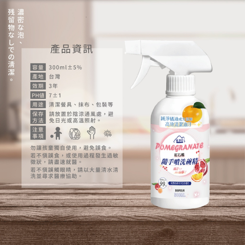 👉優淨坊 紅石榴隨手噴洗碗精 300ml