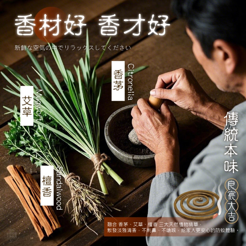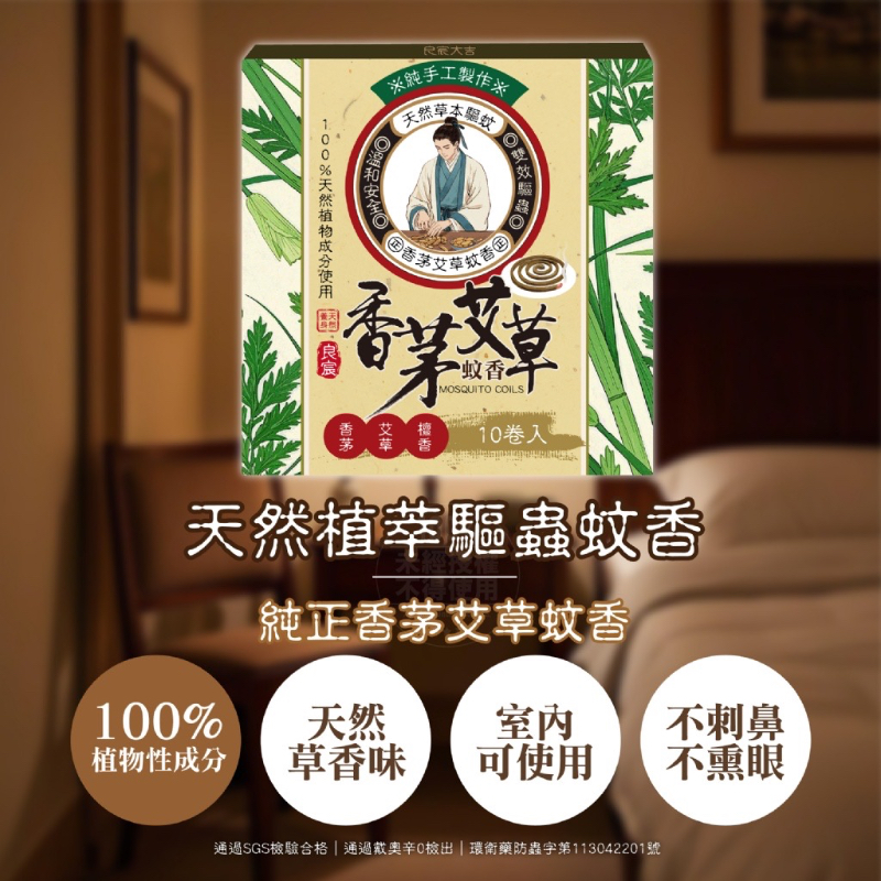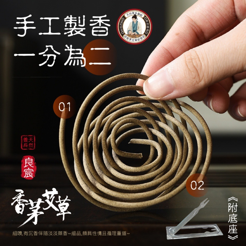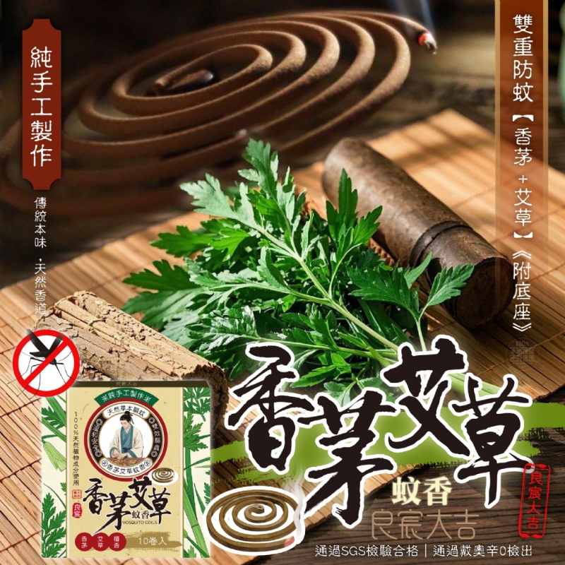 👉良宸大吉 純正香茅艾草雙效蚊香10捲入(附底座)