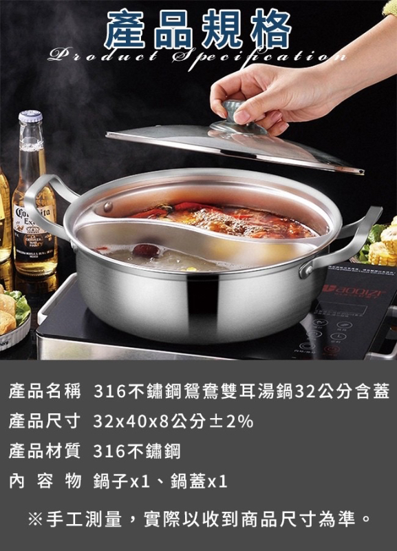 👉316不鏽鋼鴛鴦雙耳湯鍋32公分(含蓋)