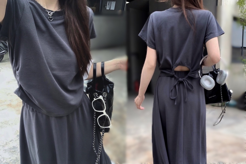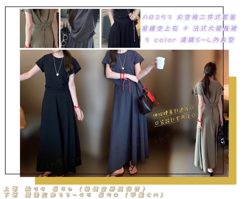 6/18(三)取貨~👉 後鏤空法式大襬長裙太空棉套裝   | [分享商店] 興興百貨行