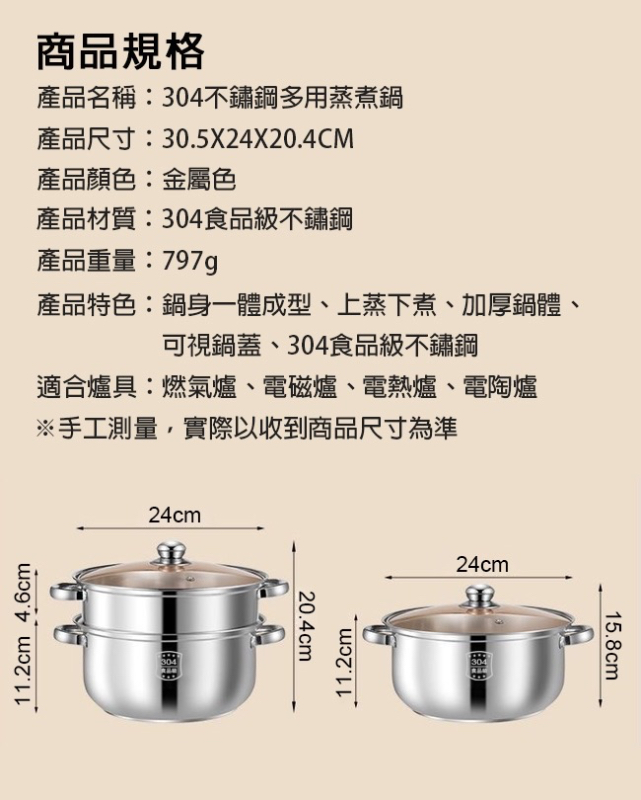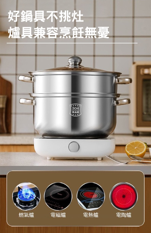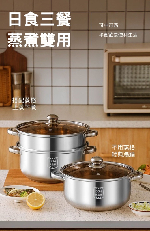 👉304不銹鋼多用蒸煮鍋(含蒸籠+鍋蓋)