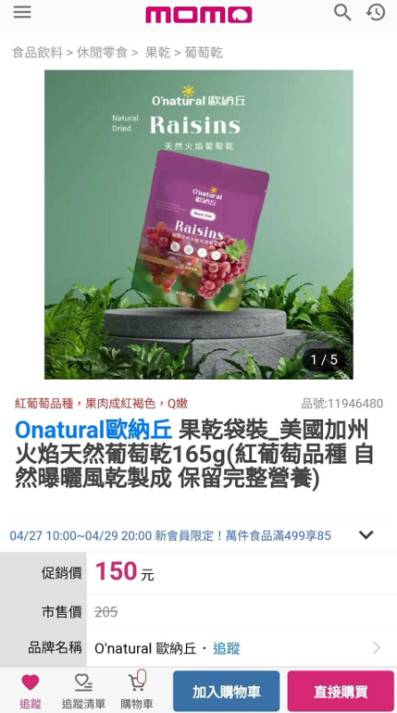 8/29(五)取貨~限時特價買一送一 歐納丘/美國加州火焰葡萄乾 165G   | [分享商店] 興興百貨行
