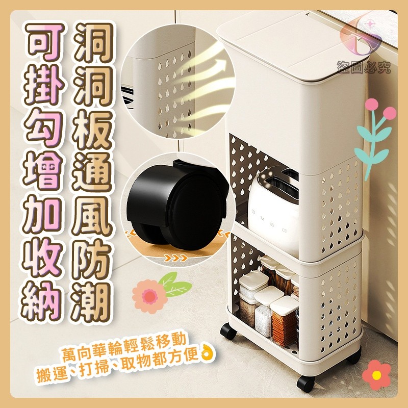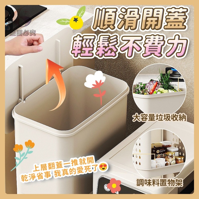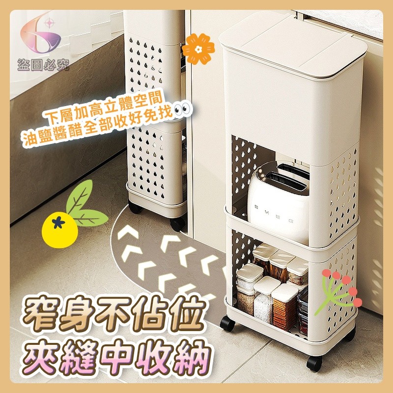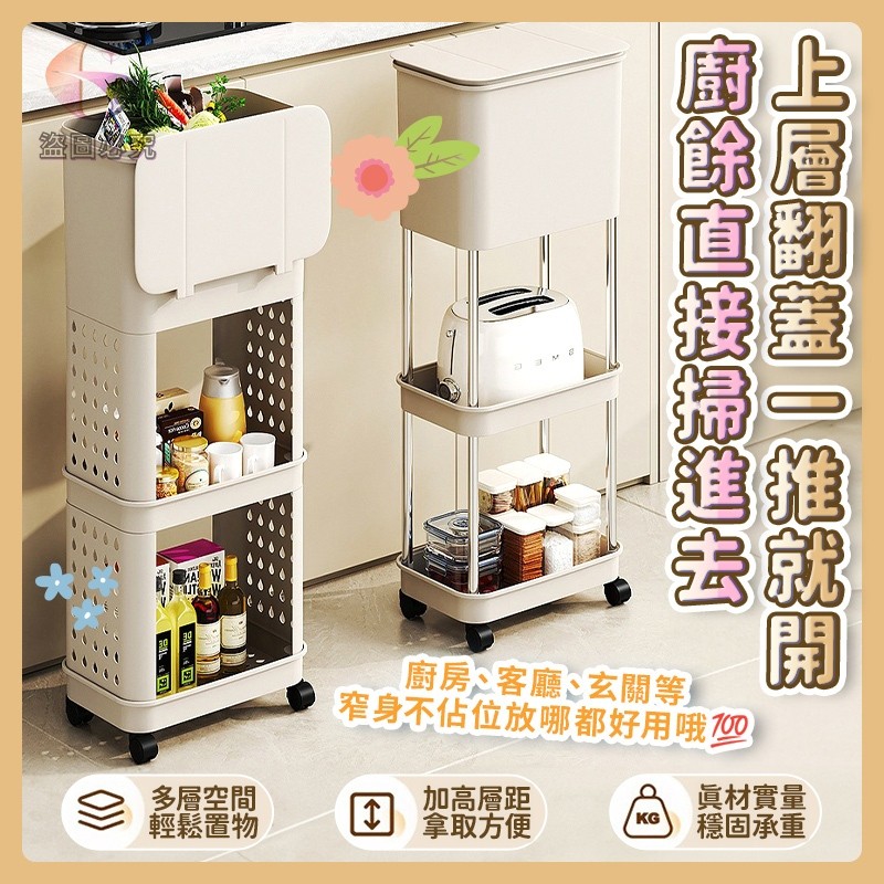 👉免彎腰三層滑輪垃圾桶置物架