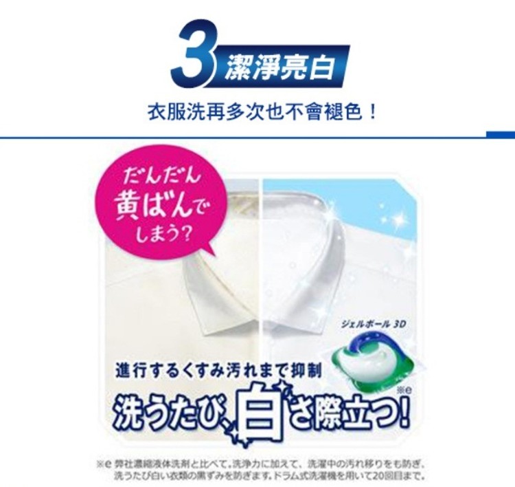 日本P&G 3D除菌抗菌洗衣球(44入)(藍)強力淨白