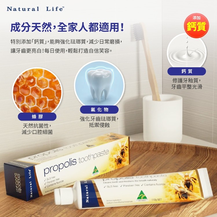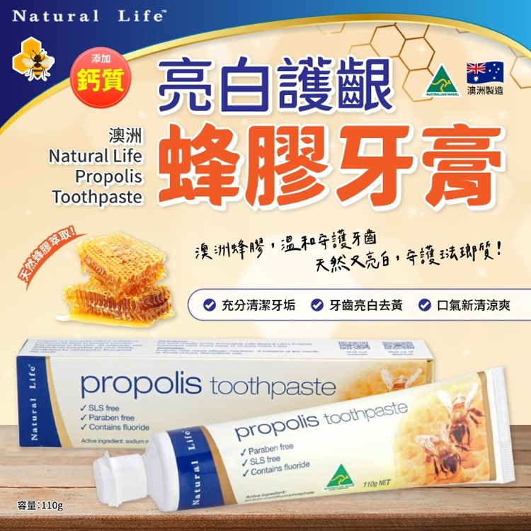 澳洲 Natural Life 亮白護齦蜂膠牙膏 110g/條