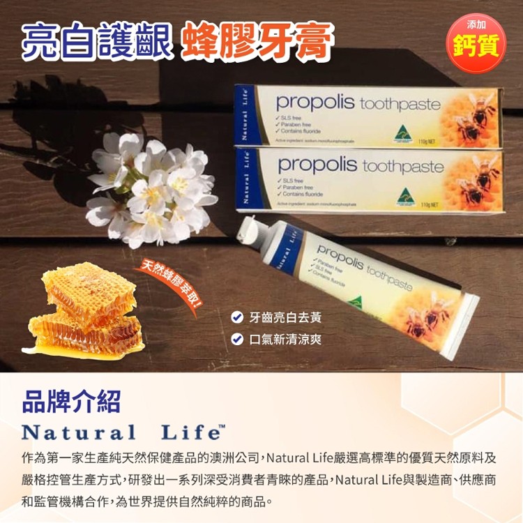 澳洲 Natural Life 亮白護齦蜂膠牙膏 110g/條🔴有中文標 👉3/17日結單  | [分享商店] 得速精緻百貨