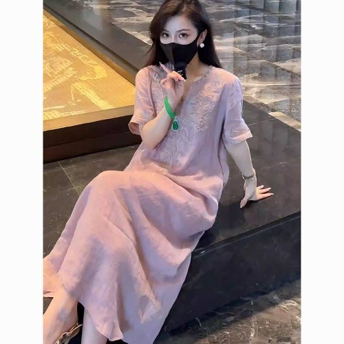 6/11(三)取貨~補白-2XL(韓組)寬松氣質長裙重工刺繡連衣裙(有口袋) | [分享商店] 得速精緻百貨
