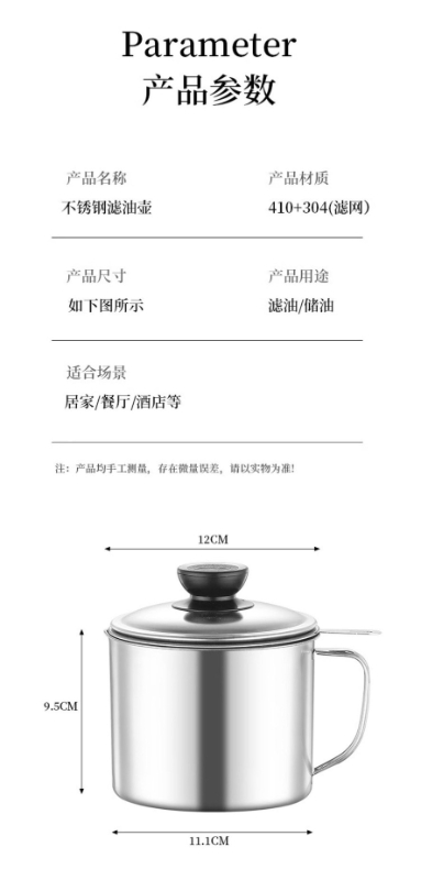 專業廚房愛用款|特厚不鏽鋼濾油杯(1.3L)