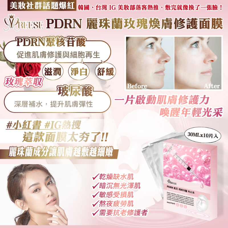 台灣製REESE 麗珠蘭玫瑰煥膚修護面膜-10片盒