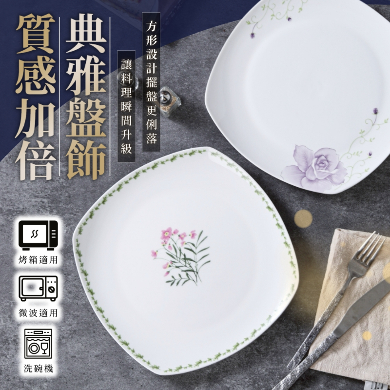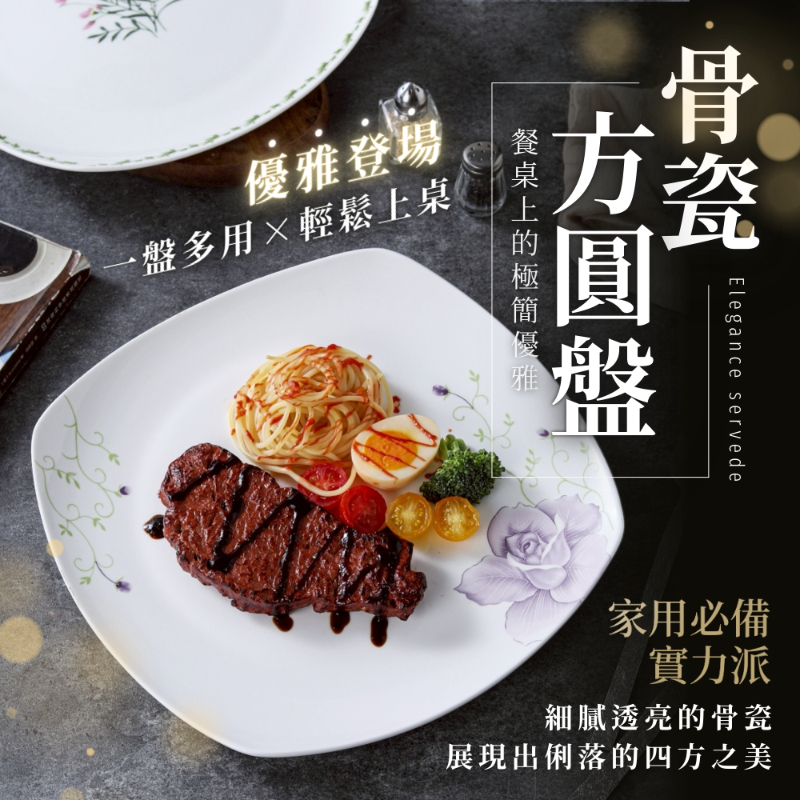 10吋骨瓷方圓盤(款式隨機)