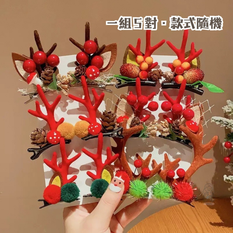可愛超萌聖誕髮夾(款式隨機)【一組5對】