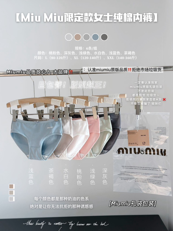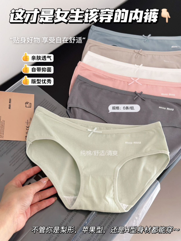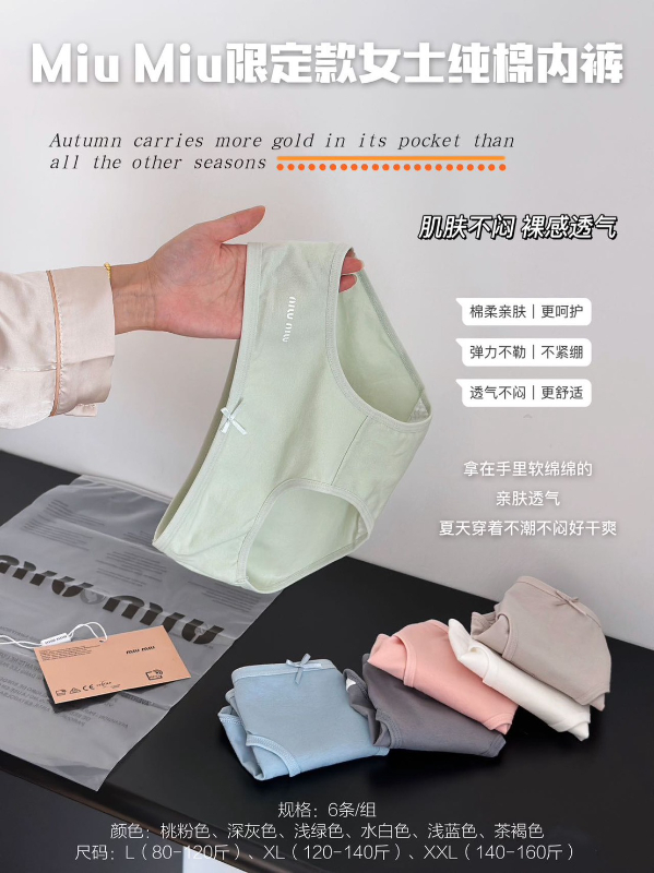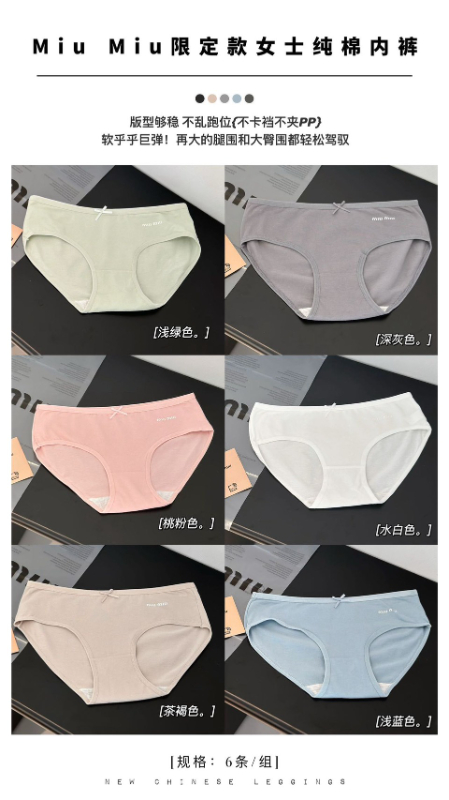 L(80-120斤)Miu 女士純棉內褲 6條/組