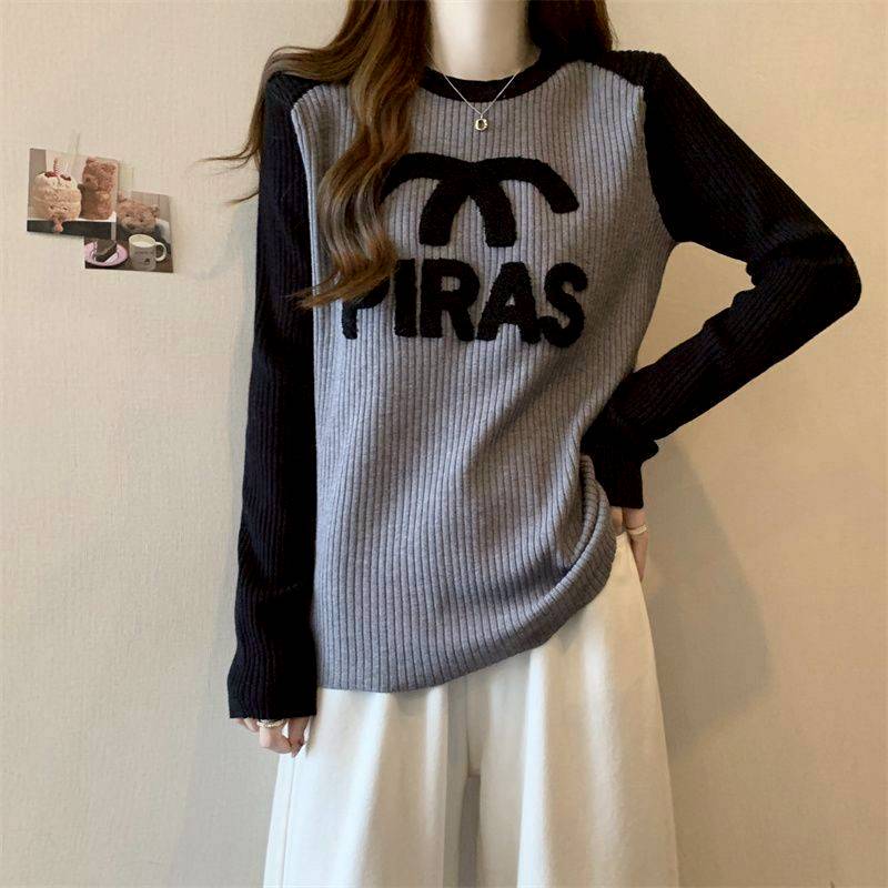 12/12(五)取貨~(韓組)大碼坑條撞色打底衫刺繡長袖上衣  | [分享商店] 得速精緻百貨