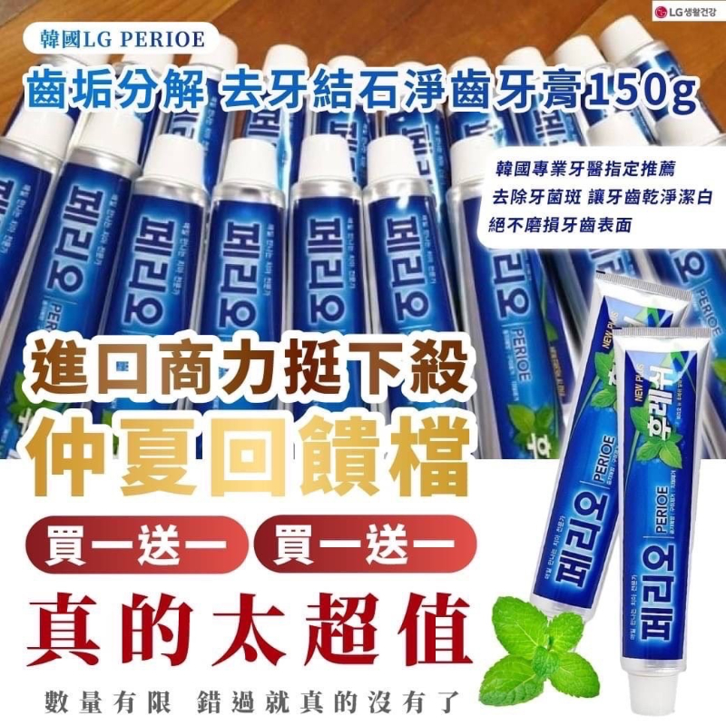 11/28(五)取貨~(買一送一)韓國 LG PERIOE 倍麗兒 齒垢分解 去牙結石淨齒牙膏150g/條 +1=2條   | [分享商店] 得速精緻百貨