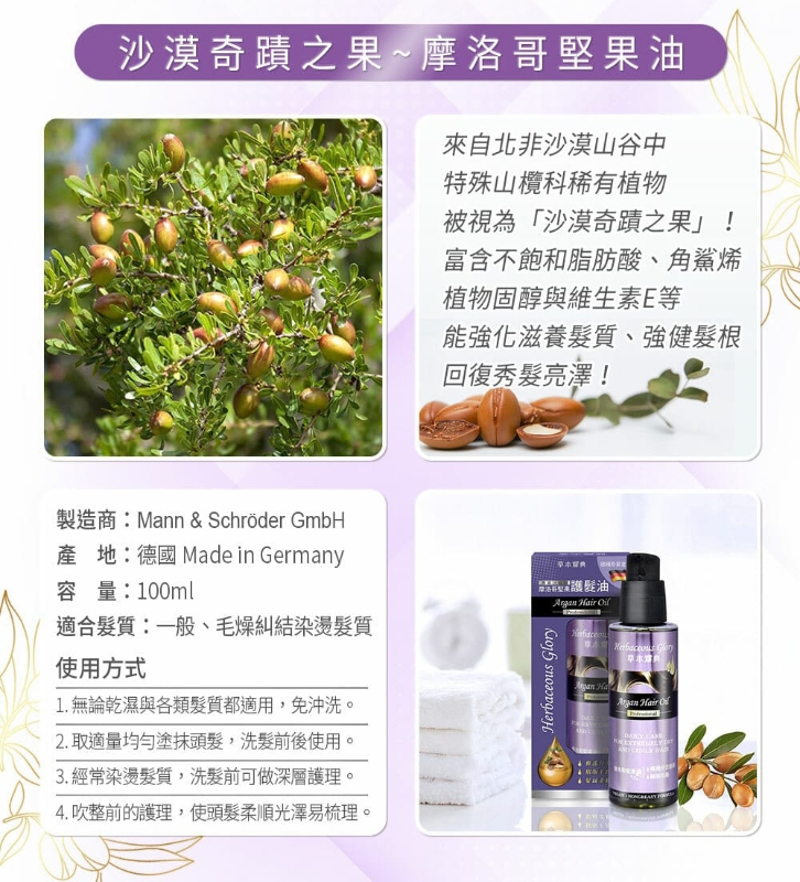德國原裝進口~草本耀典摩洛哥堅果護髮油100ml~ 為乾澀毛躁髮絲所設計 👉12/29日結單  | [分享商店] 得速精緻百貨