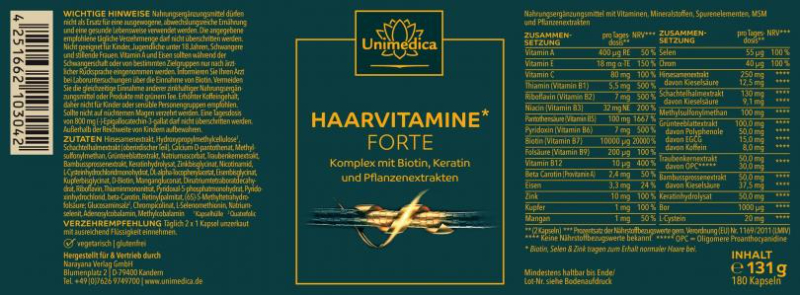 Unimedica 🇩🇪 角蛋白養髮綜合維生素膠囊 加強版 (180錠入)