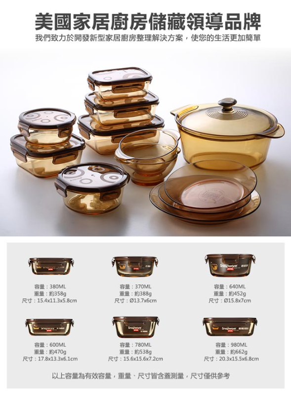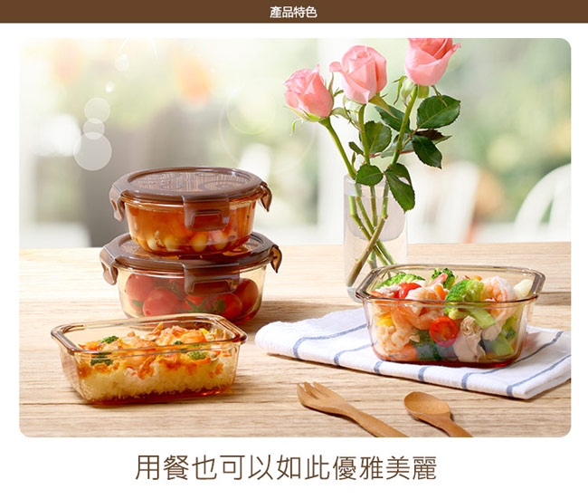康寧密扣 琥珀色耐熱玻璃保鮮盒-圓形 600ml(SP-AB600R)