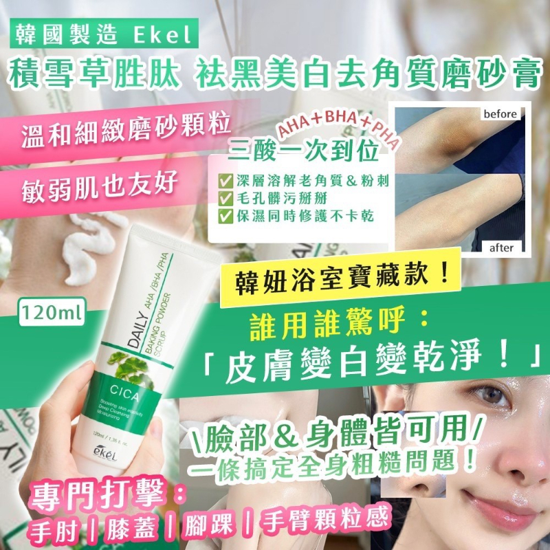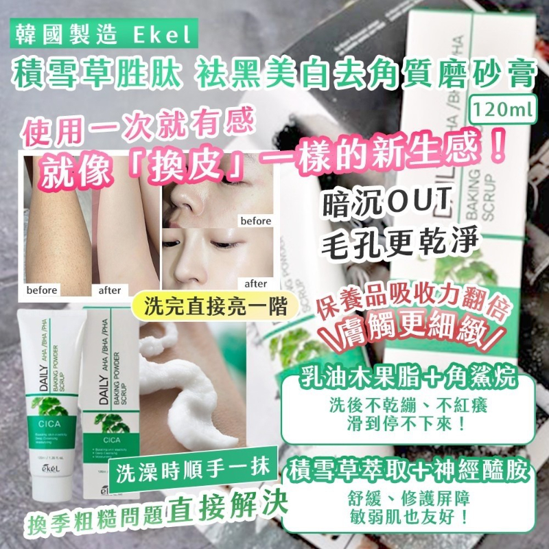 韓國製造Ekel積雪草胜肽袪黑美白去角質磨砂膏120ml 👉2/2日結單  | [分享商店] 得速精緻百貨