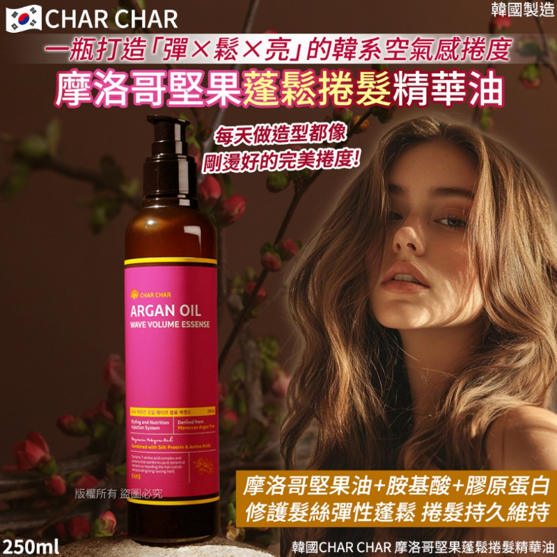 韓國CHAR CHAR 摩洛哥堅果蓬鬆捲髮精華油-250ml(單瓶) 👉2/5日結單  | [分享商店] 得速精緻百貨