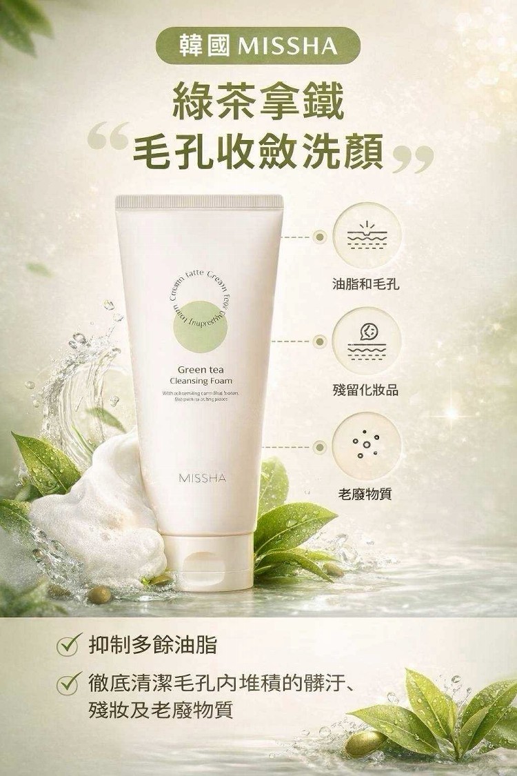 ❌️原價:339 元❌️韓國MISSHA綿密拿鐵控油潔顏乳(綠茶)172ml/支 👉2/23 日結單  | [分享商店] 得速精緻百貨