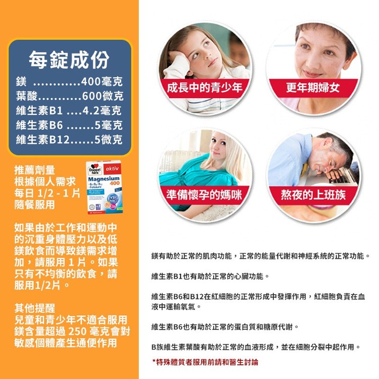 Doppelherz 多寶雙心 鎂400+維生素B群+葉酸錠 (30錠入)